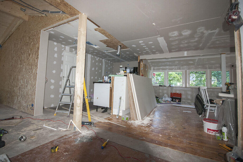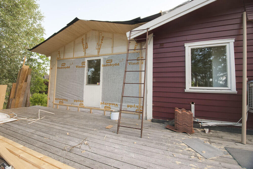 Vid mindre tillbyggnader på huset går det ofta bra, men vid stora totalrenoveringar och inre ombyggnationer kan det vara fördelaktigt att bo på annan plats under de mest intensiva byggveckorna.